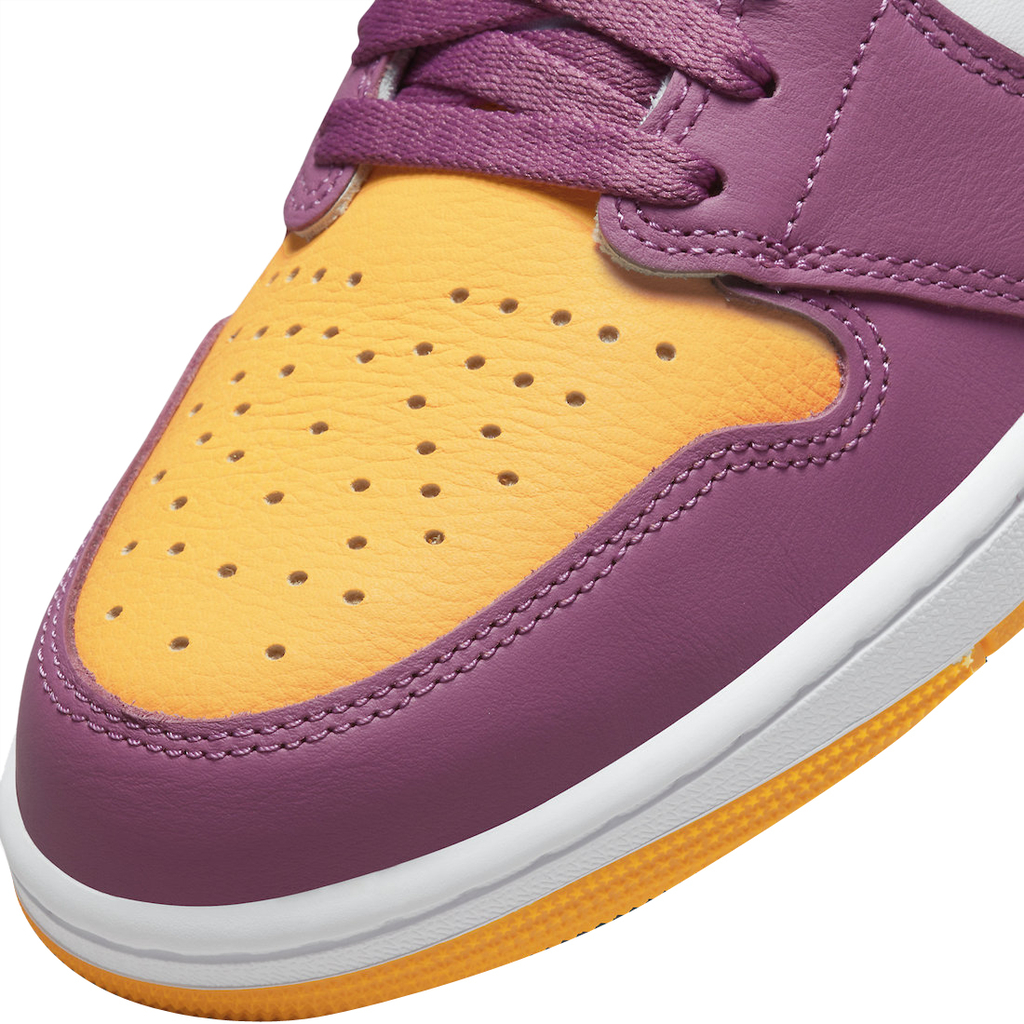 Este nuevo Air Jordan 1 High OG rinde homenaje a la fraternidad Omega Psi Phi de Michael Jordan a la que se unió durante sus días en la UNC. Fundada el 17 de noviembre de 1911, Omega Psi Phi es la primera organización fraternal fundada en una universidad históricamente negra. Este Air Jordan 1 adopta un esquema de color dorado universitario, burdeos claro y blanco, ya que los zapatos vienen con blanco en los paneles laterales de cuero, lengüetas de nailon y entresuela que contrastan con superposiciones doradas y burdeos. Bordeuax en los cordones y la marca junto con una suela de goma amarilla en el diseño.